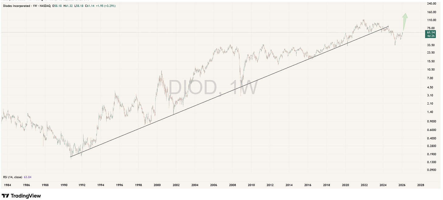 DIOD is the “working class” semiconductor. It does not power ChatGPT. It powers the real economy. It makes the boring, essential components that go into automotive systems, industrial automation, and smart manufacturing.